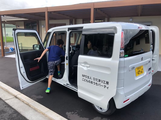 2019年8月 赤い羽根共同募金会様より、放課後等デイサービス送迎車両用として「スズキ スペーシア」をご寄贈頂きました。